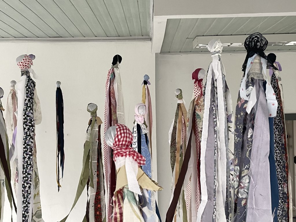 Instalacja składa się z kilkudziesięciu materiałowych laleczek. Miotanki opierają się na relacji pomiędzy materiałem a dotykiem, pomiędzy materią a przepływem. Inspirację można znaleźć w prostym geście dotknięcia kamienia, a ze starego prześcieradła stworzyć nowe duchy ochronne.