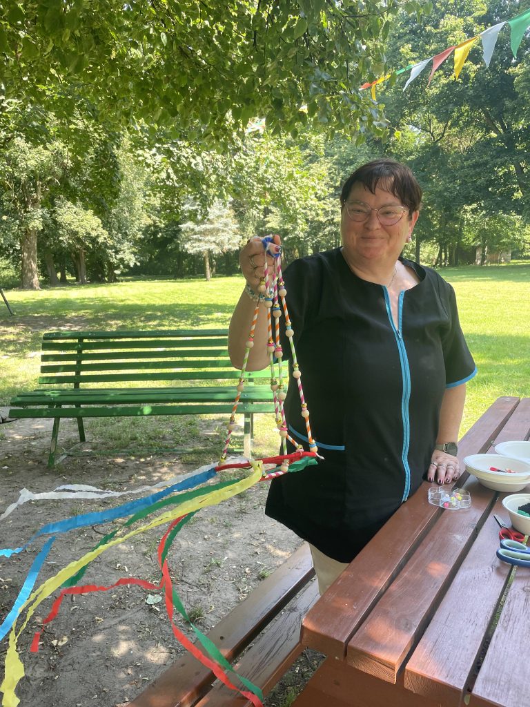 Oba spotkania odbywały się w ogrodzie, w atmosferze swobodnej zabawy materiałami, rozmów i wspólnego spędzania czasu. Warsztaty sprzyjały nie tylko rozwojowi artystycznemu, ale też wzmacniały więzi między uczestnikami.